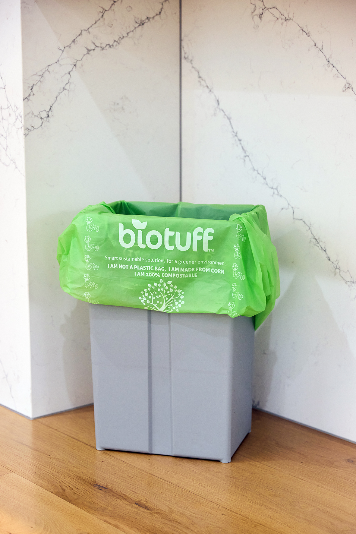 - Compostable Bin Liners– for guest rooms, bathrooms, kitchens, public spaces, and back-of-house areas